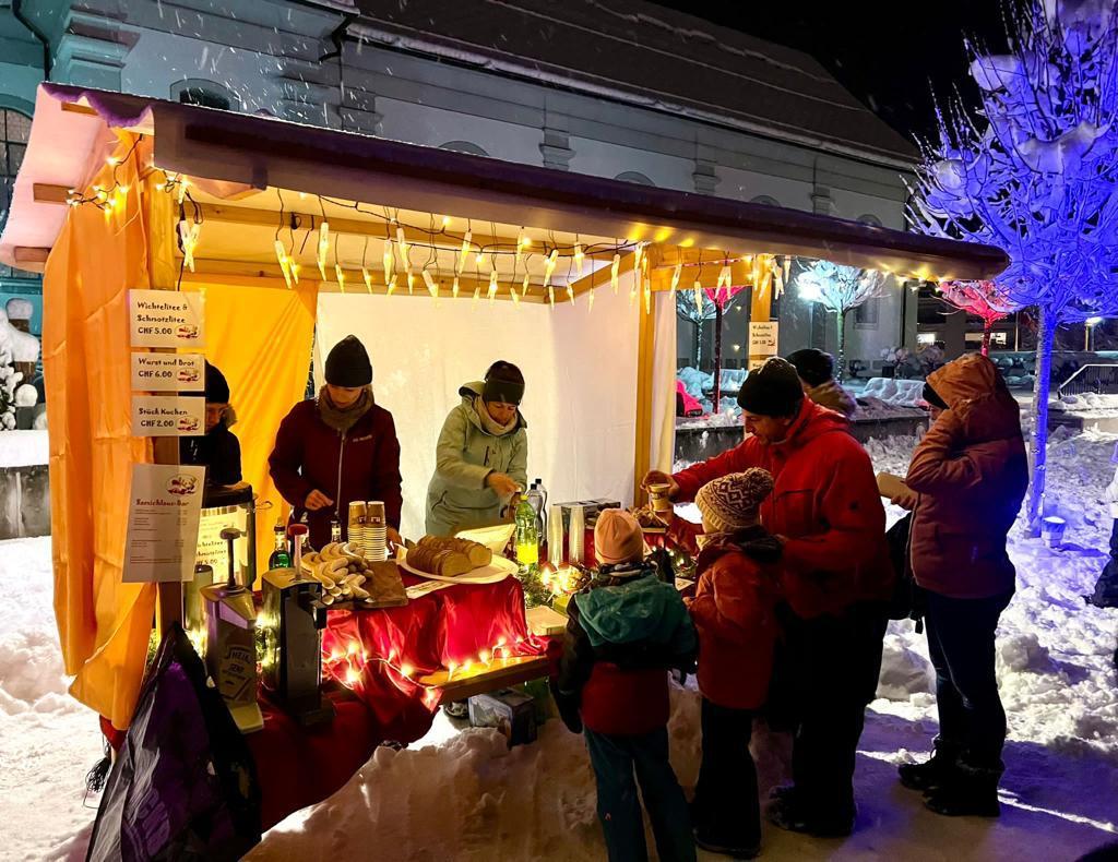 Clausmärt Bei herrlichem Winterwetter zog eine grosse Schar Kinder und Erwachsene in den Wald, um dort den Samichlaus mit seinem Gefolge abzuholen.