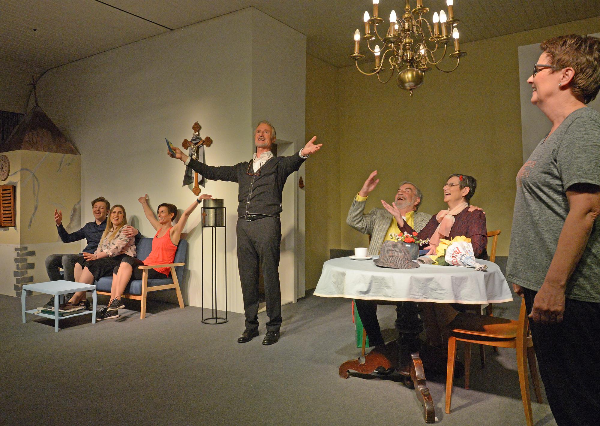 Theater Suspektes und jede Menge menschliche Schwächen ziehen ins Pfarrhaus ein. Der Generalvikar kommt auf Inspektionstour und gerät selbst ins Schleudern. Das Lustspiel «Dem Himmel sei ...