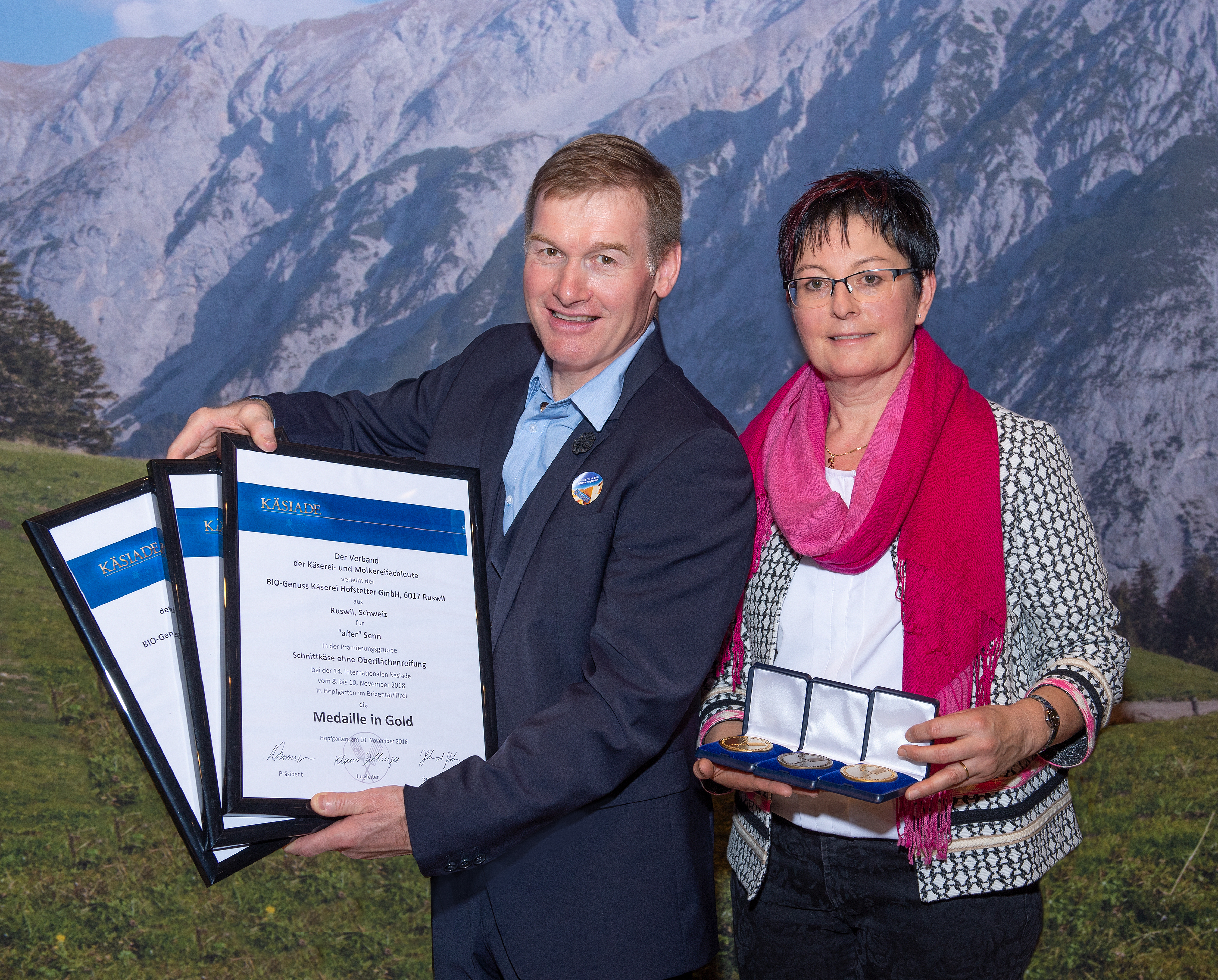 Käse Grosser Erfolg für George und Irène Hofstetter von der Bio Genuss Käserei Hofstetter GmbH. Sie feierten im Tirol (Österreich) bei der internationalen Käsiade in Hopfgarten drei ...