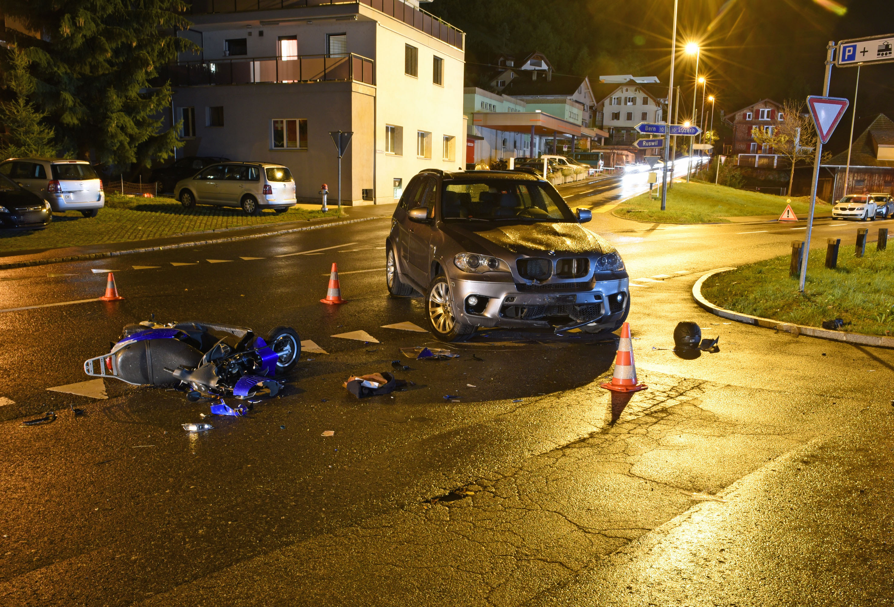 Kollision Am Dienstagabend ereignete sich auf der Bahnhofstrasse in Wolhusen ein Verkehrsunfall zwischen einem Personenwagen und einem Motorrad. Der Motorradfahrer verletzte sich beim Unfall ...