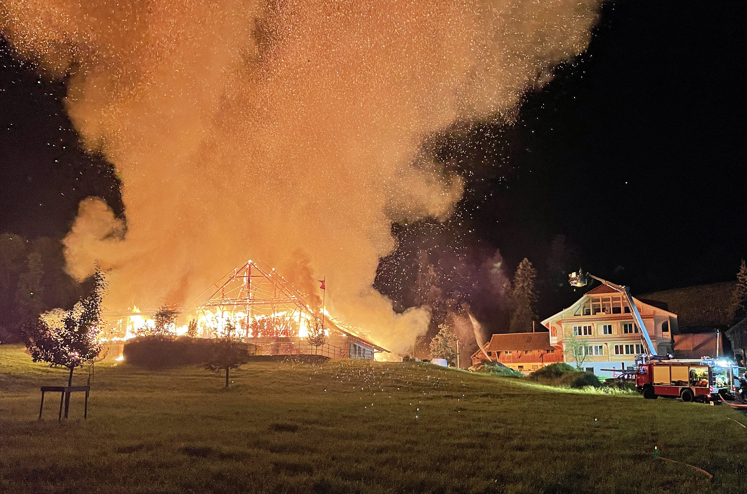 Brand In der Nacht auf Mittwoch brannte eine Scheune in Wolhusen bis auf die Grundmauern nieder. Rund 75 Kühe und Kälber konnten gerettet werden, rund 100 Schweine und drei Kälber kamen ...