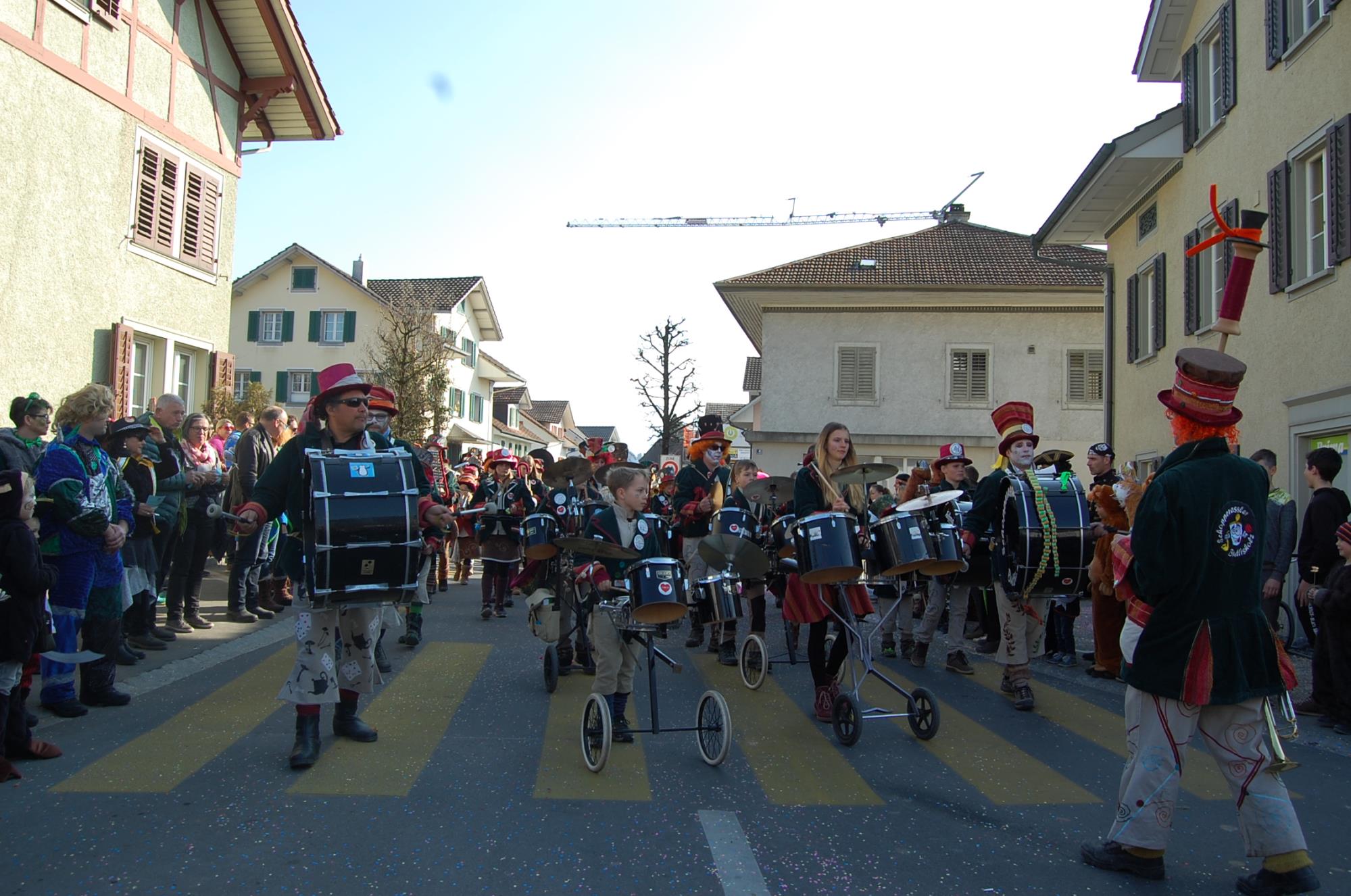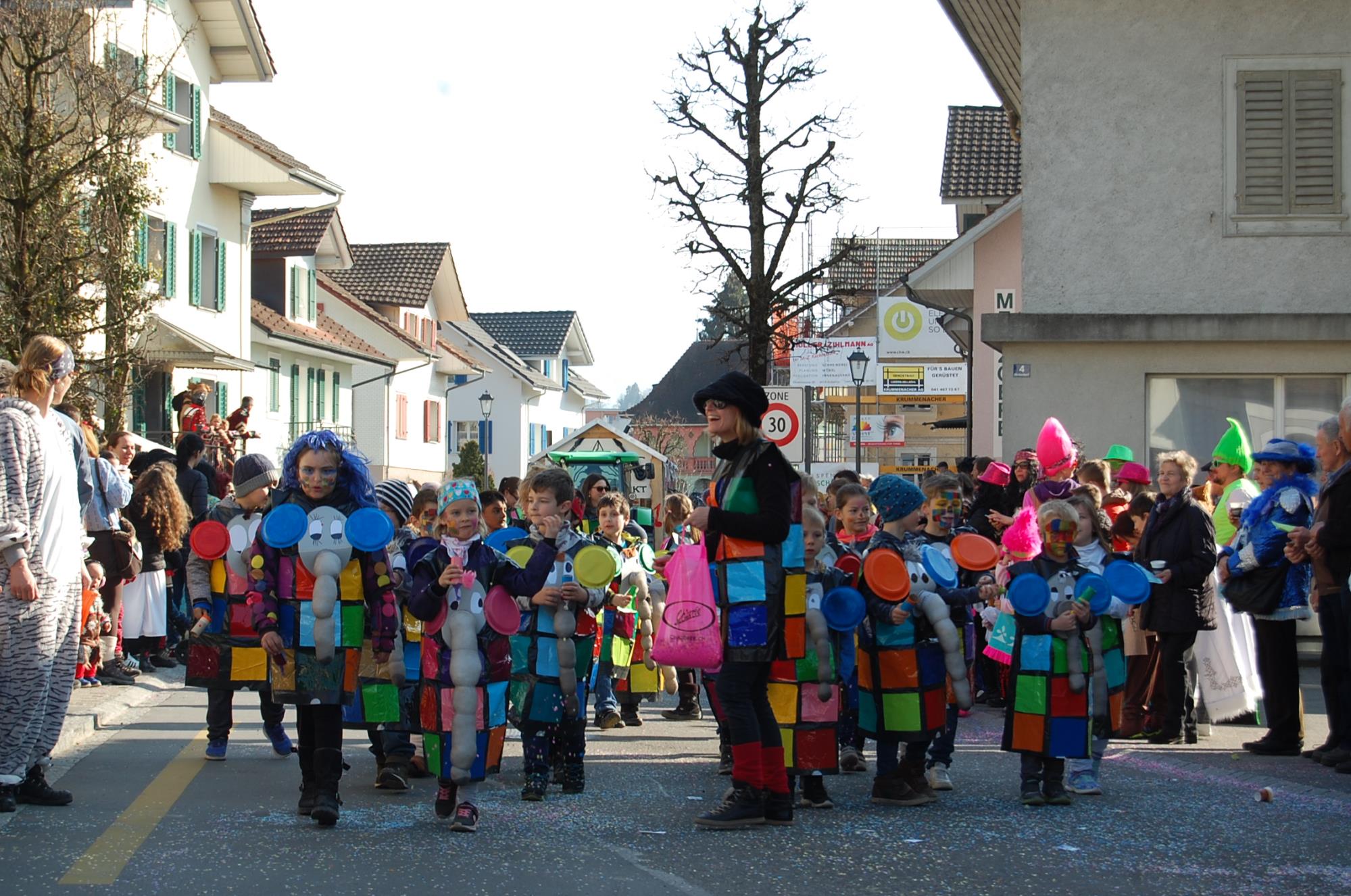 Ganz Buttisholz war am frühlingshaften Schmutzigen Donnerstag beim grandiosen Kinderumzug durchs Dorf auf den Beinen. 20 farbige Nummern mit rund 550 Mitwirkenden zogen mit viel Klamauk zu den kakophonischen Klängen an den rund 2000 Zuschauern vorbei. Fotos Willi Rölli