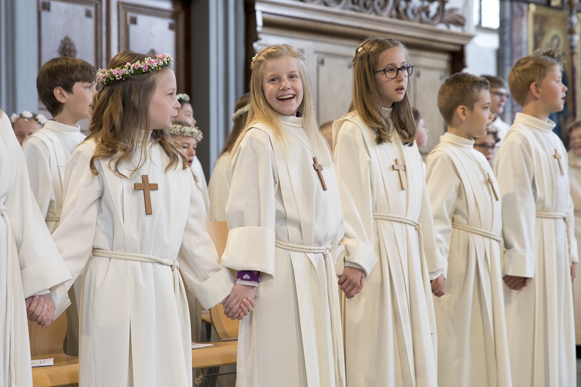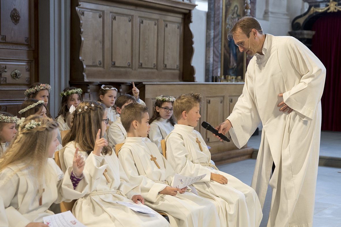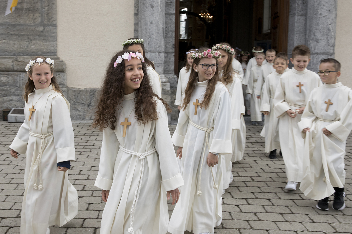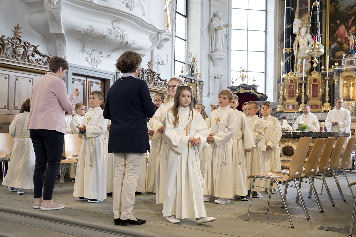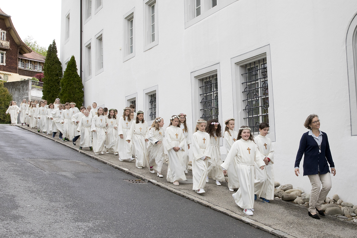 Viele Kinder empfingen am letzten Sonntag zum ersten Mal das heilige Brot. Dabei wurden sie in den festlich gestalteten Gottesdiensten begleitet von Eltern, Geschwistern, Paten, Verwandten und Bekannten. Während den letzten Monaten bereiteten sich die Kinder intensiv und mit inhaltsreichen Themen auf diesen grossen Tag vor.