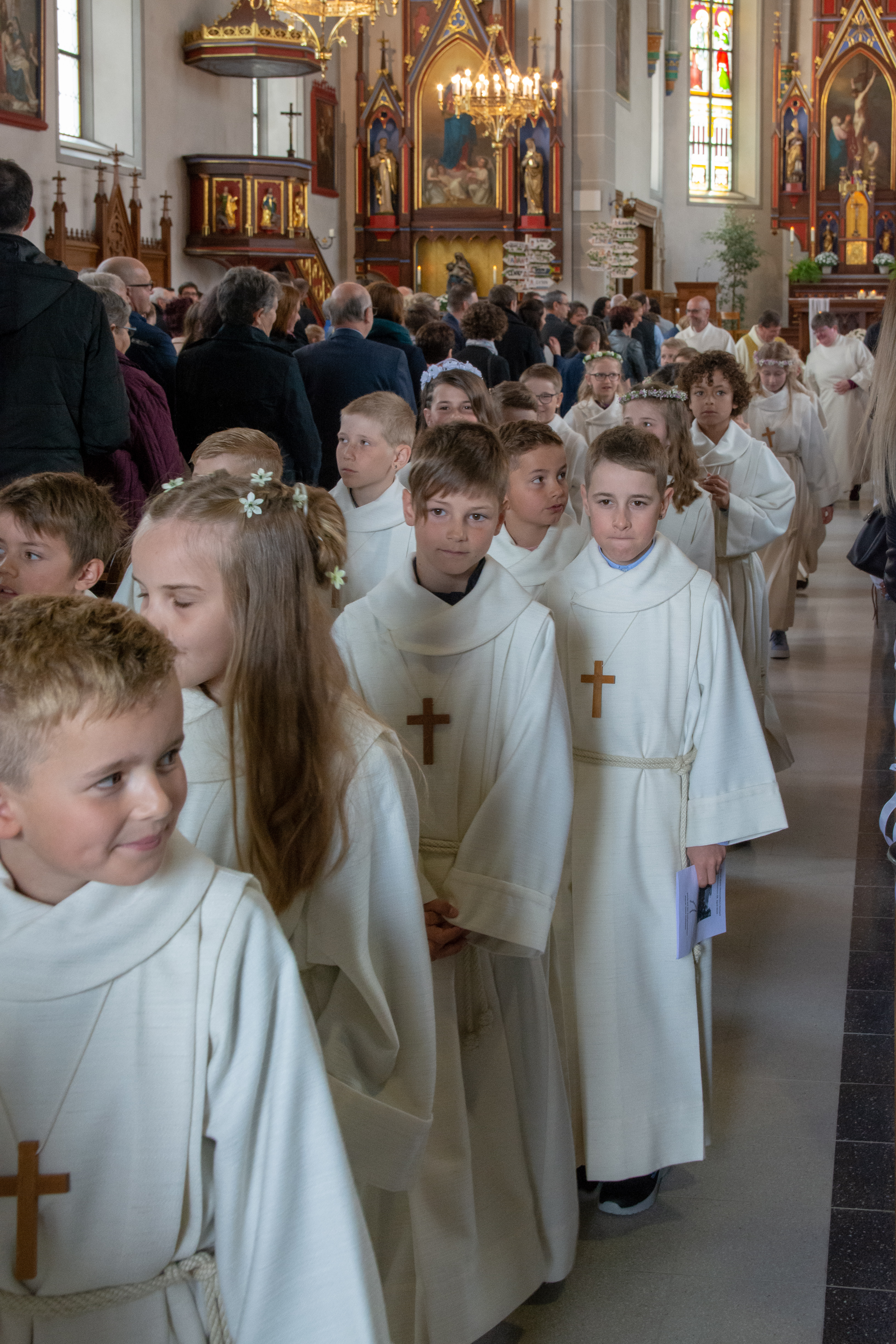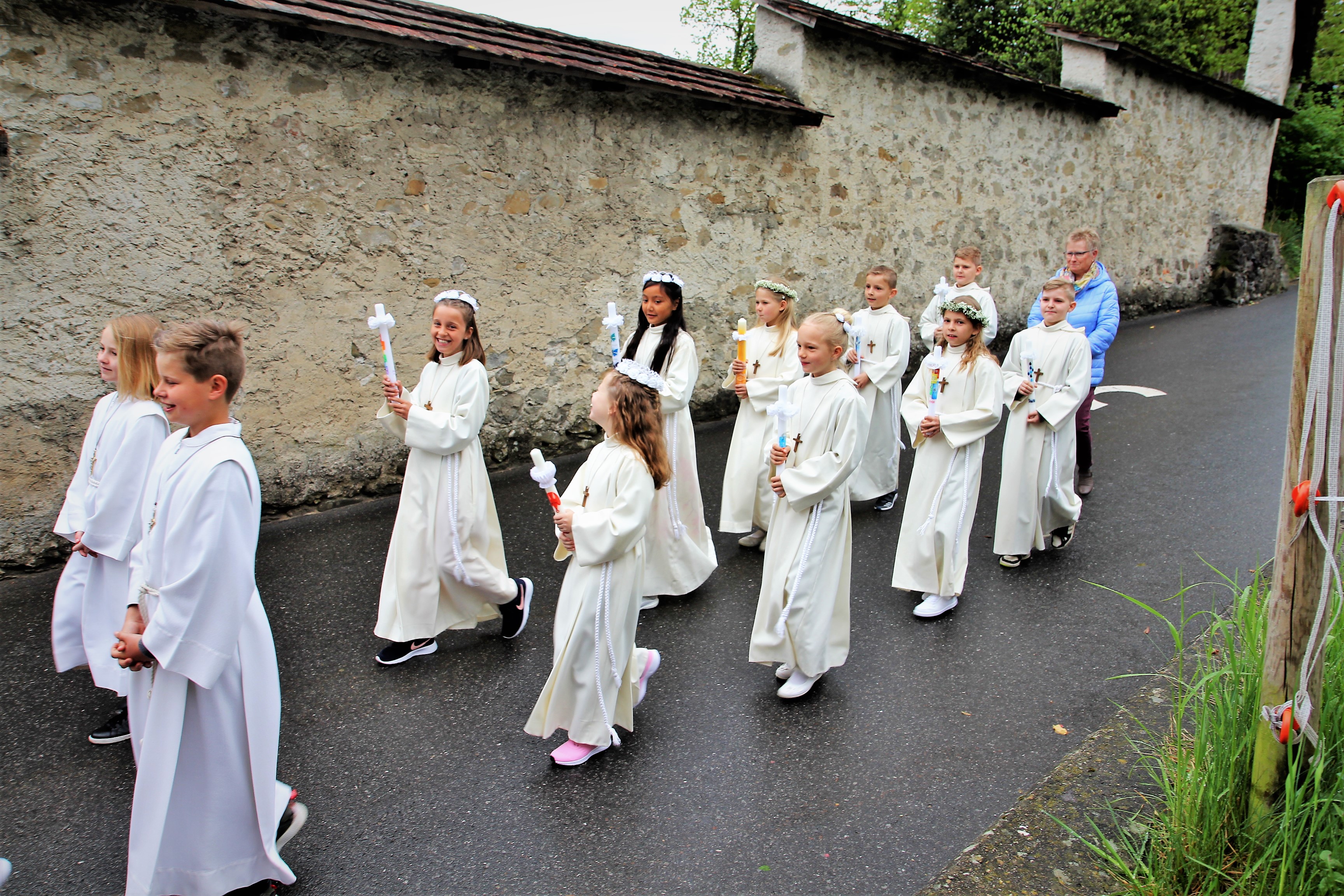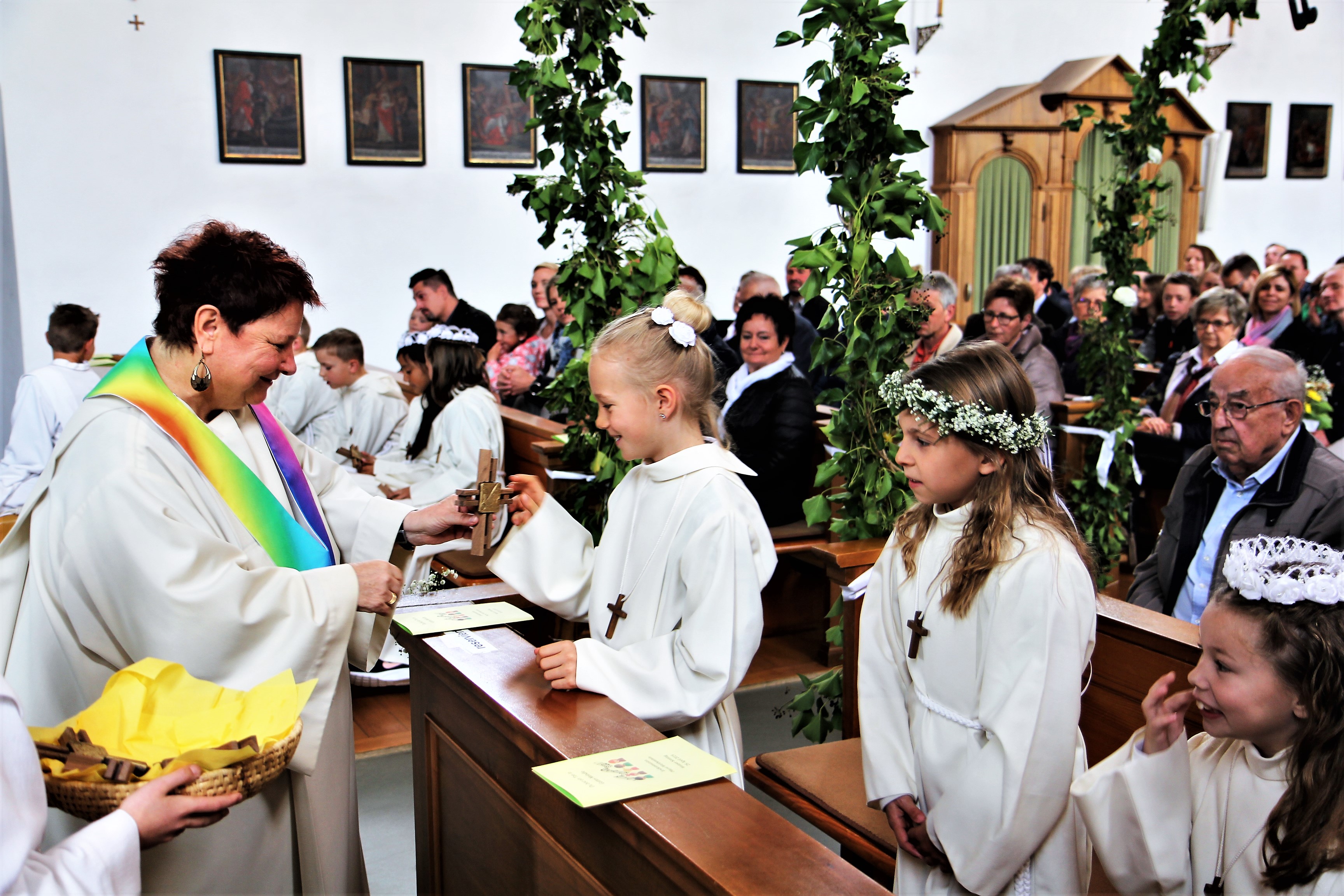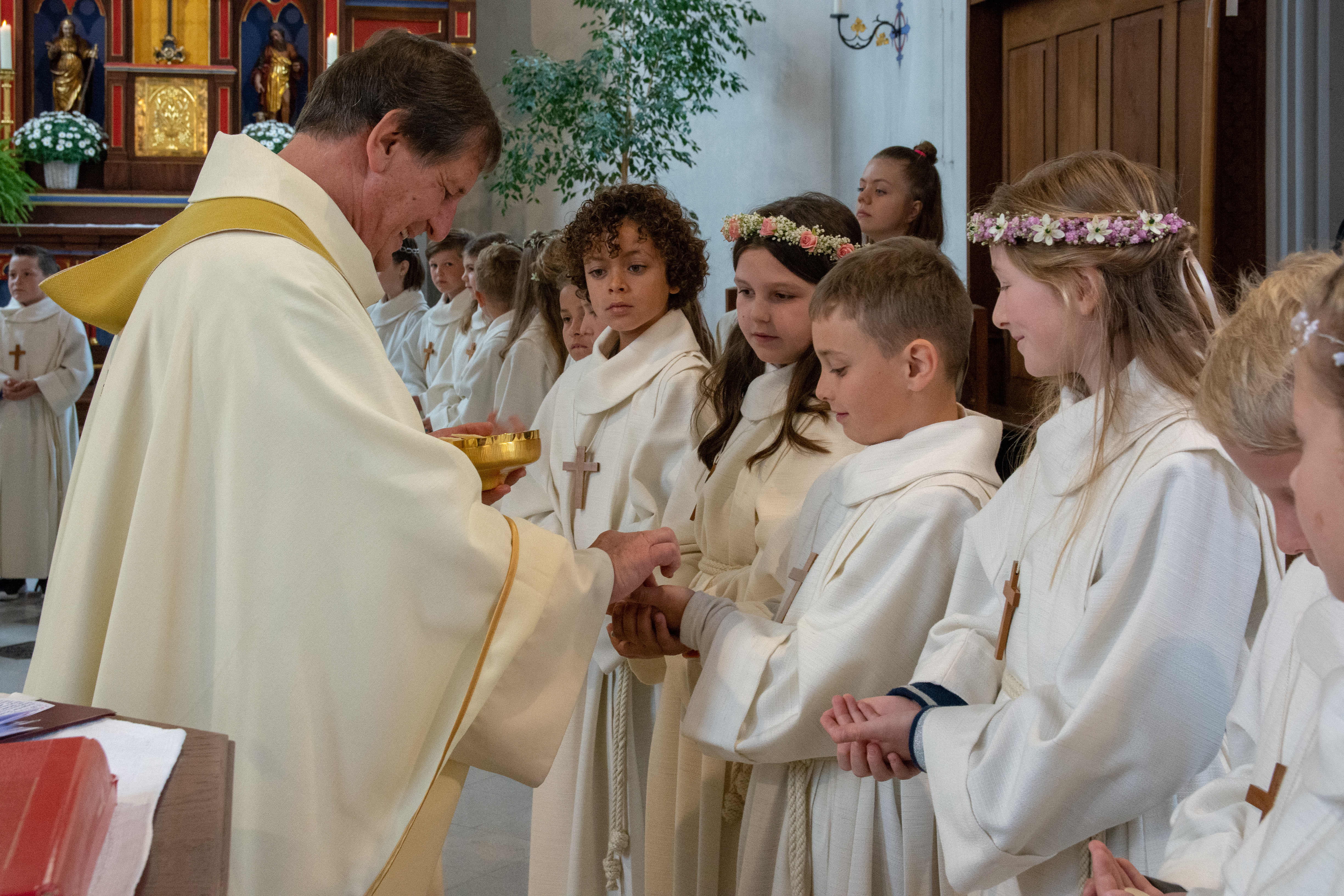 Viele Kinder empfingen am letzten Sonntag zum ersten Mal das heilige Brot. Dabei wurden sie in den festlich gestalteten Gottesdiensten begleitet von Eltern, Geschwistern, Paten, Verwandten und Bekannten. Während den letzten Monaten bereiteten sich die Kinder intensiv und mit inhaltsreichen Themen auf diesen grossen Tag vor.