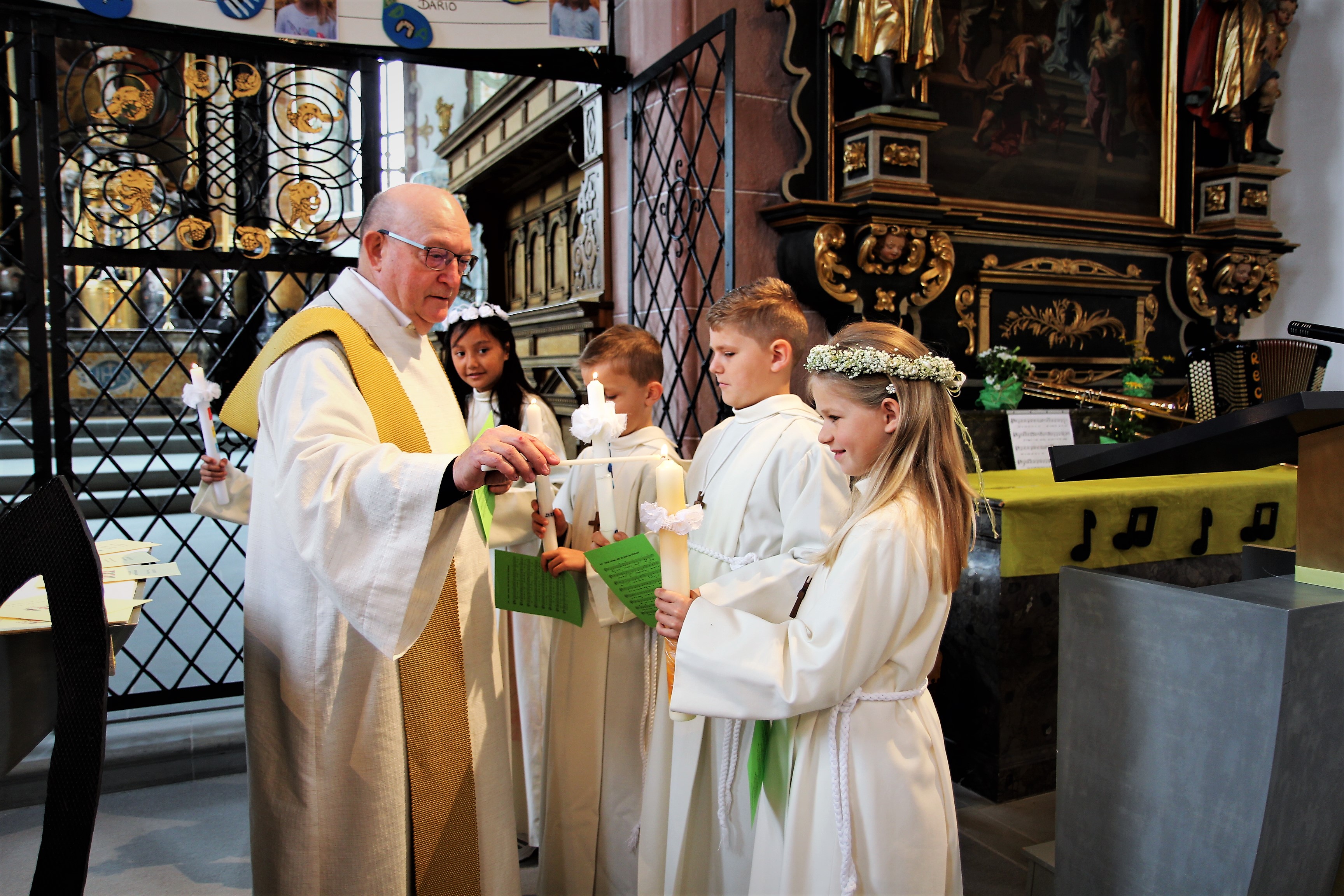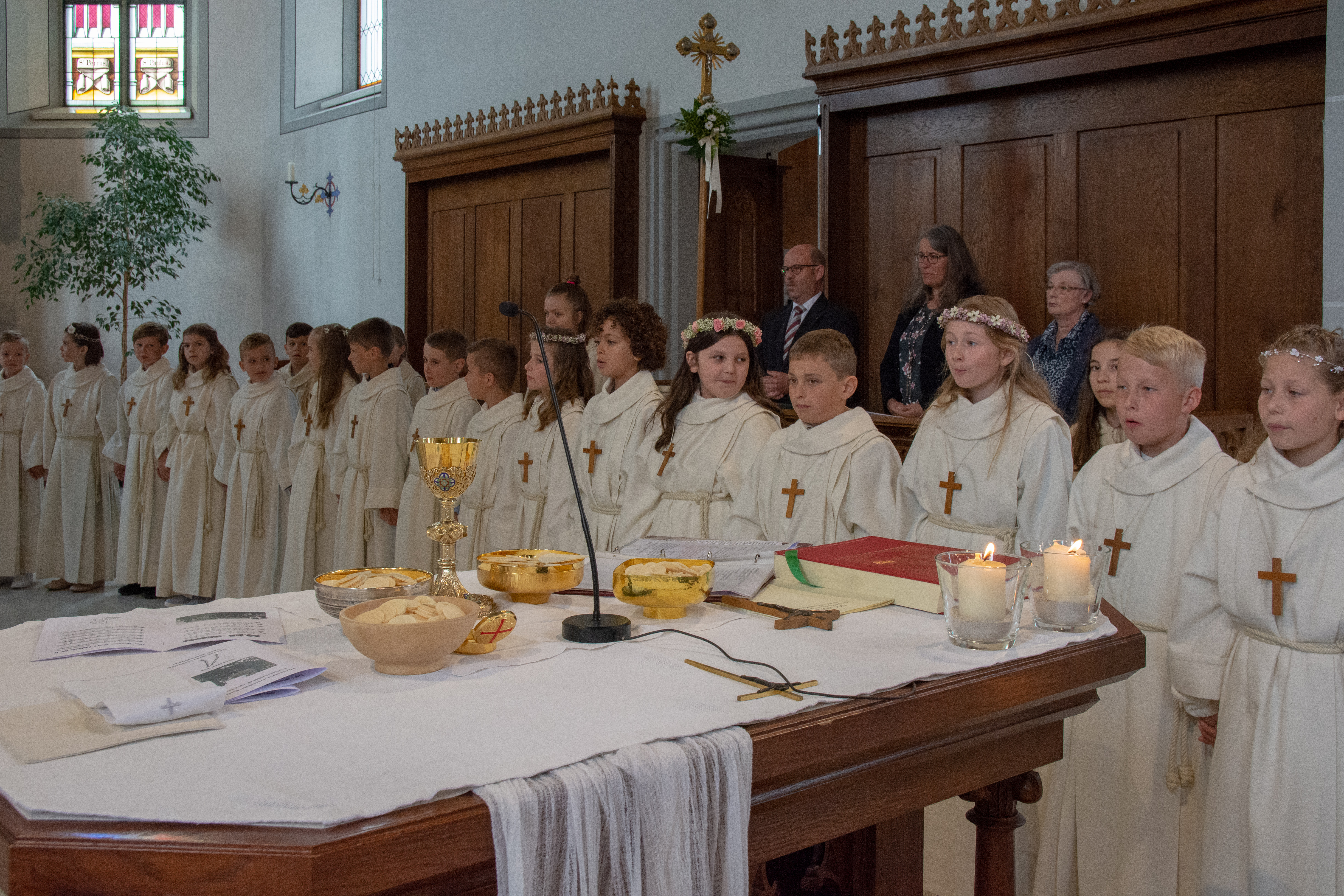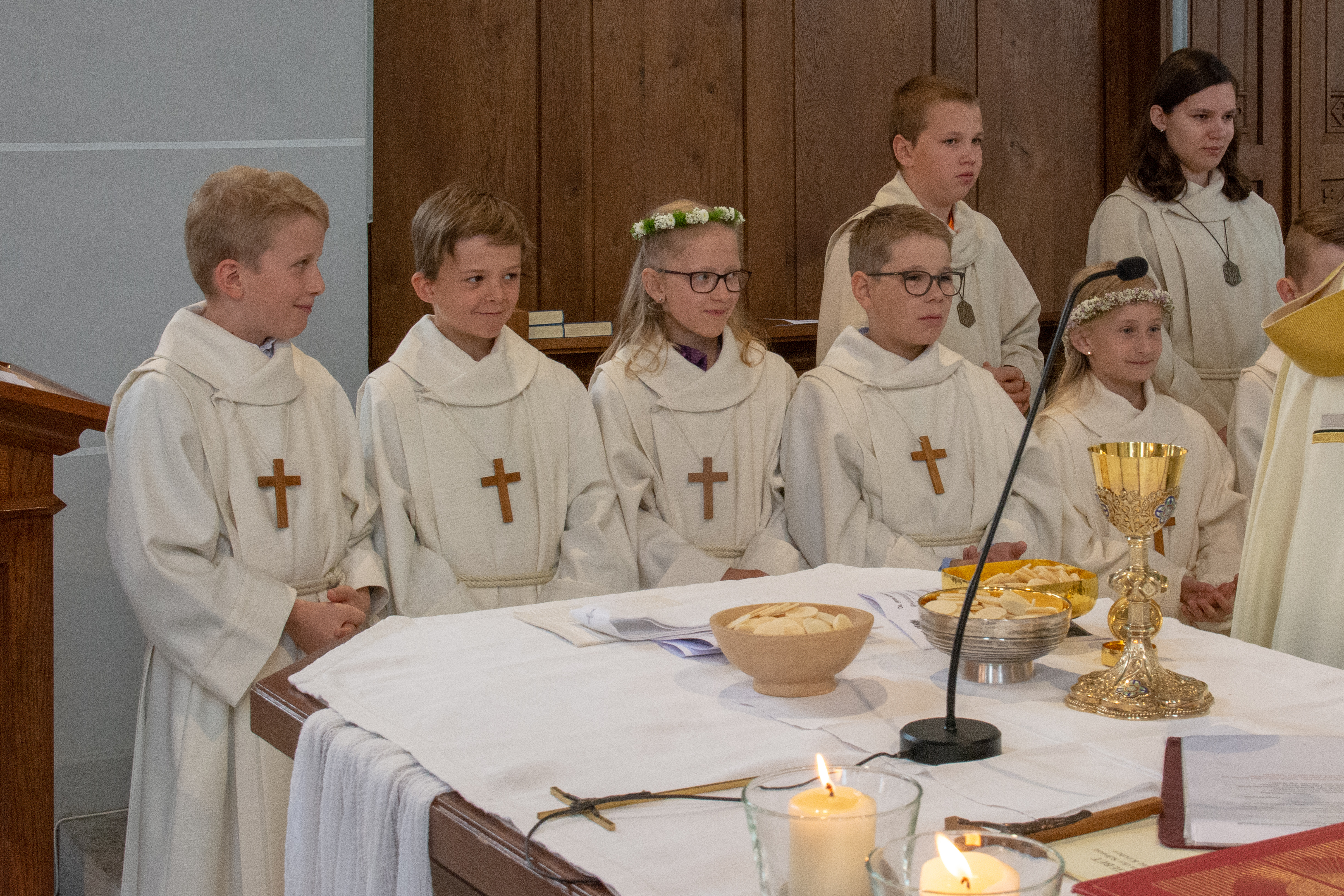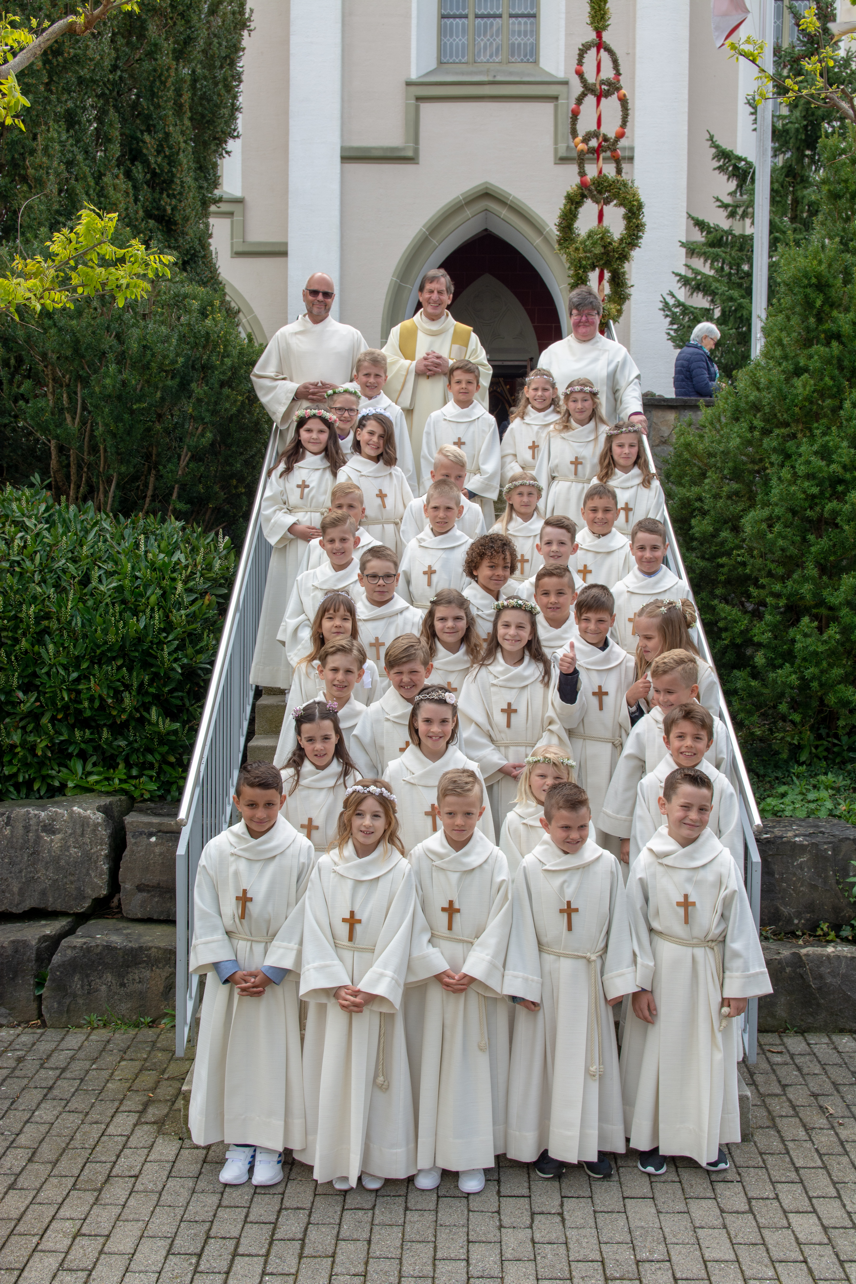 Viele Kinder empfingen am letzten Sonntag zum ersten Mal das heilige Brot. Dabei wurden sie in den festlich gestalteten Gottesdiensten begleitet von Eltern, Geschwistern, Paten, Verwandten und Bekannten. Während den letzten Monaten bereiteten sich die Kinder intensiv und mit inhaltsreichen Themen auf diesen grossen Tag vor.