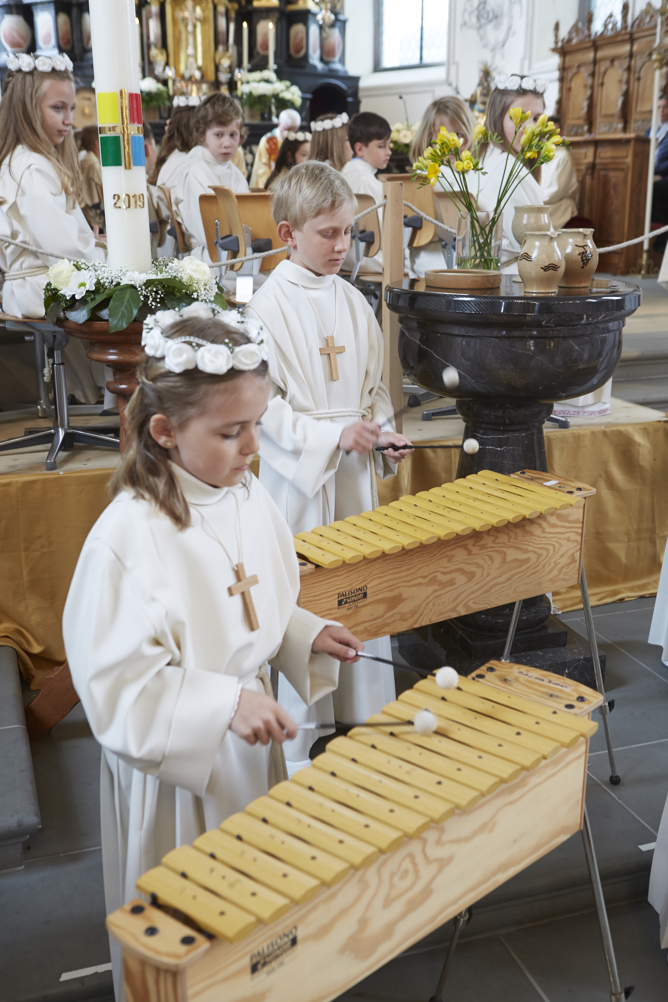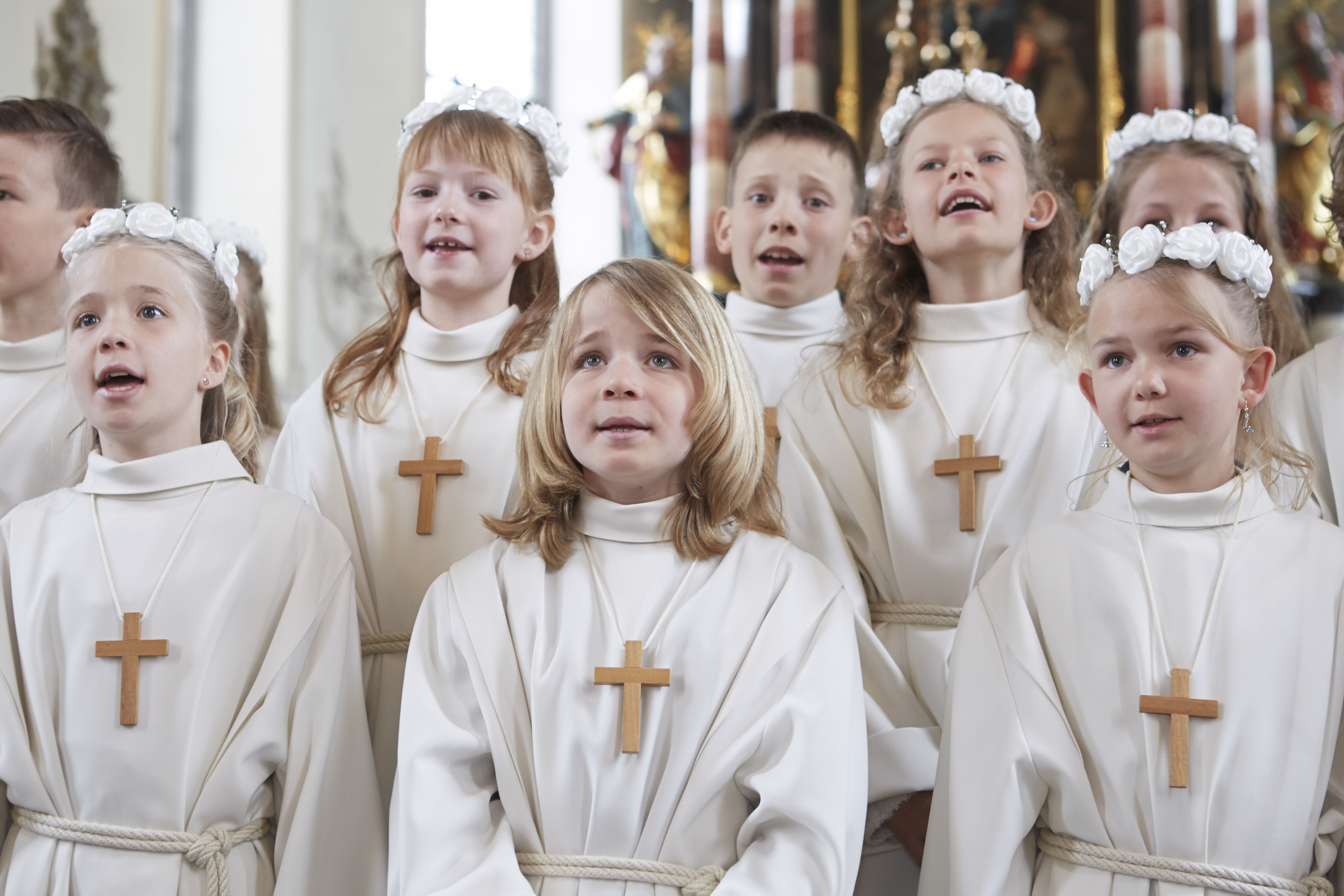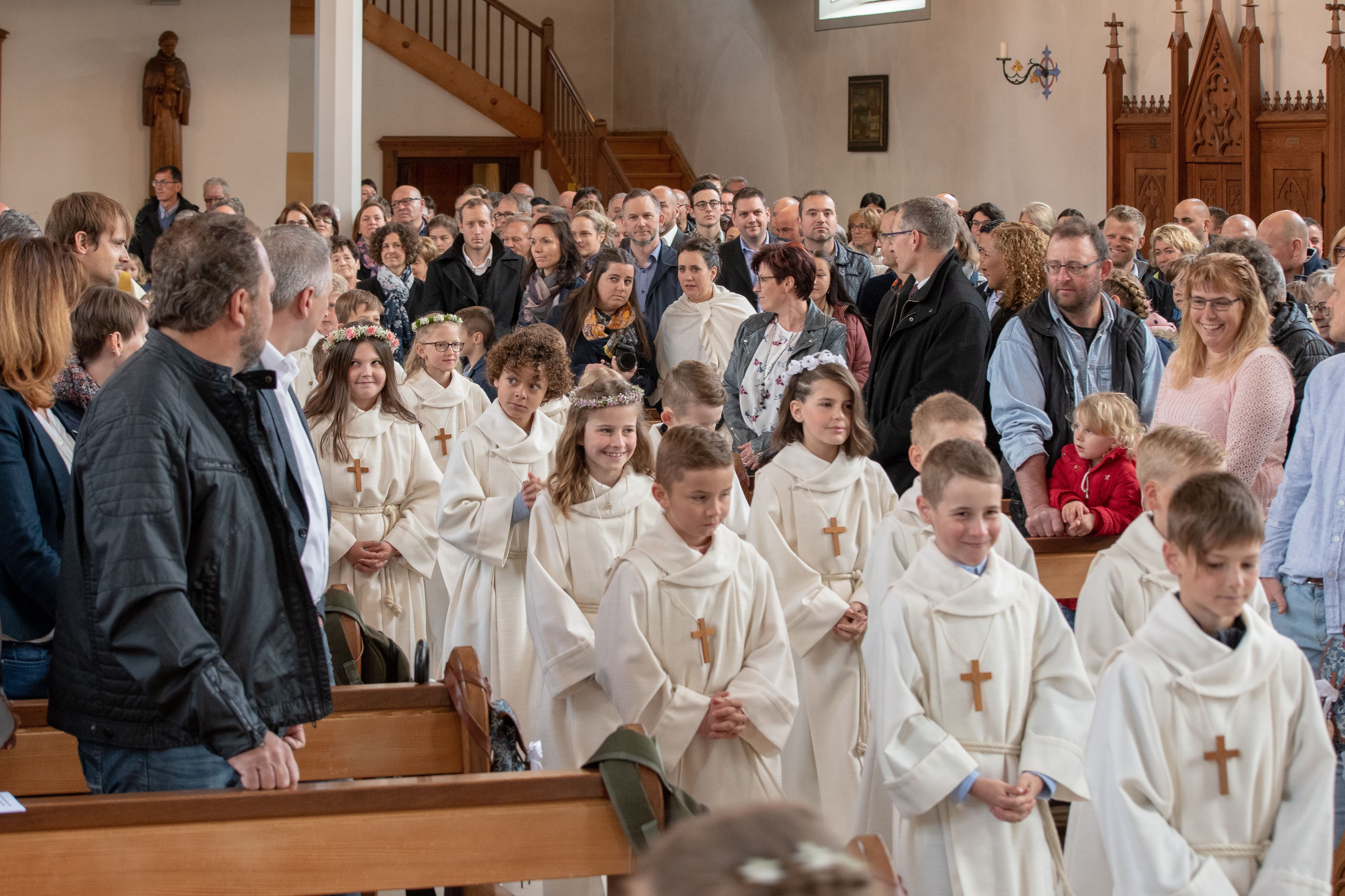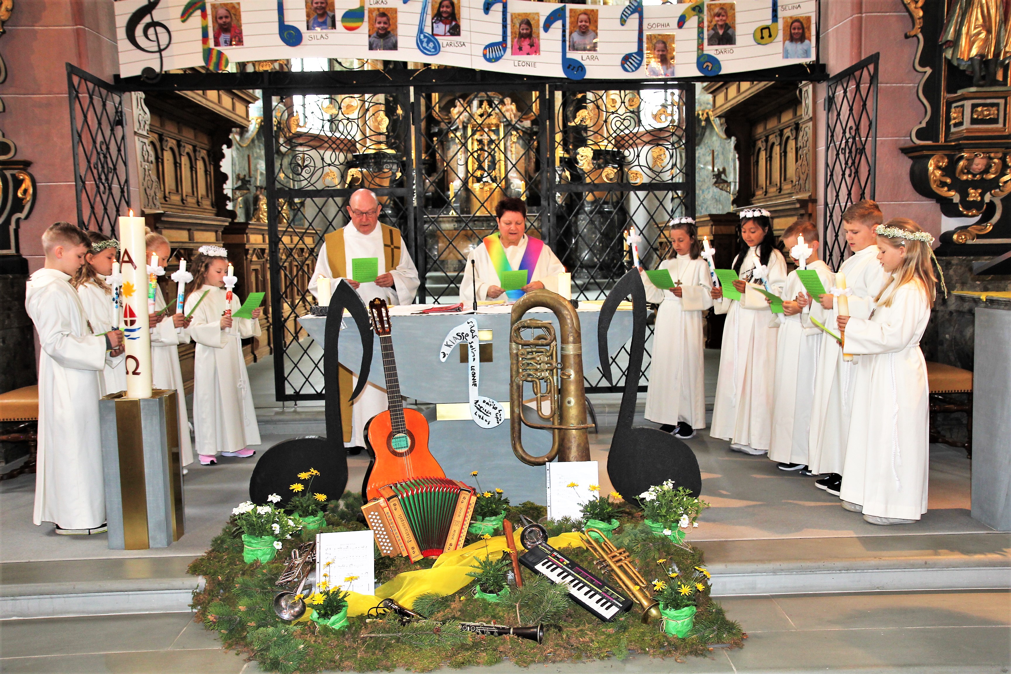 Viele Kinder empfingen am letzten Sonntag zum ersten Mal das heilige Brot. Dabei wurden sie in den festlich gestalteten Gottesdiensten begleitet von Eltern, Geschwistern, Paten, Verwandten und Bekannten. Während den letzten Monaten bereiteten sich die Kinder intensiv und mit inhaltsreichen Themen auf diesen grossen Tag vor.