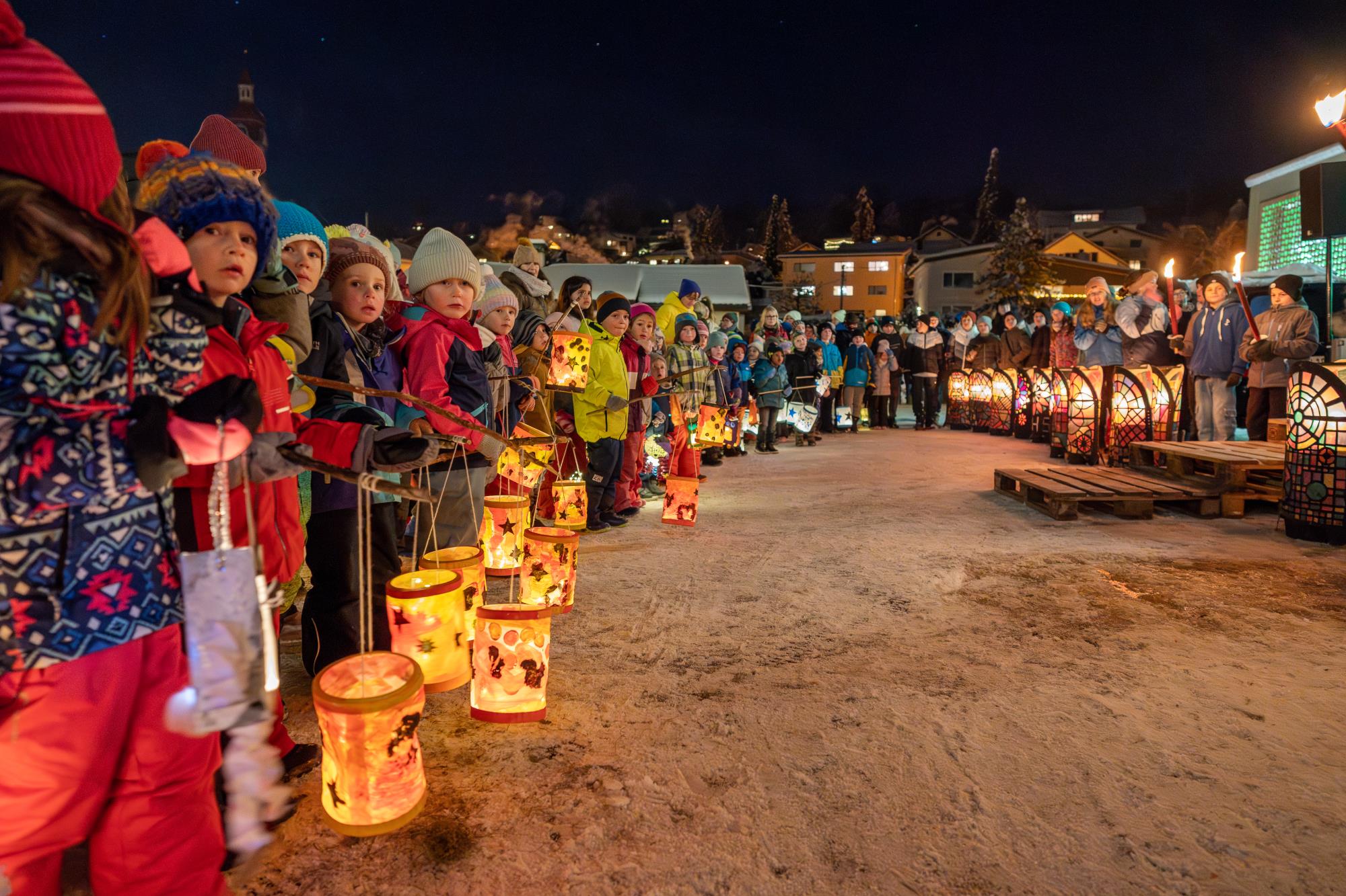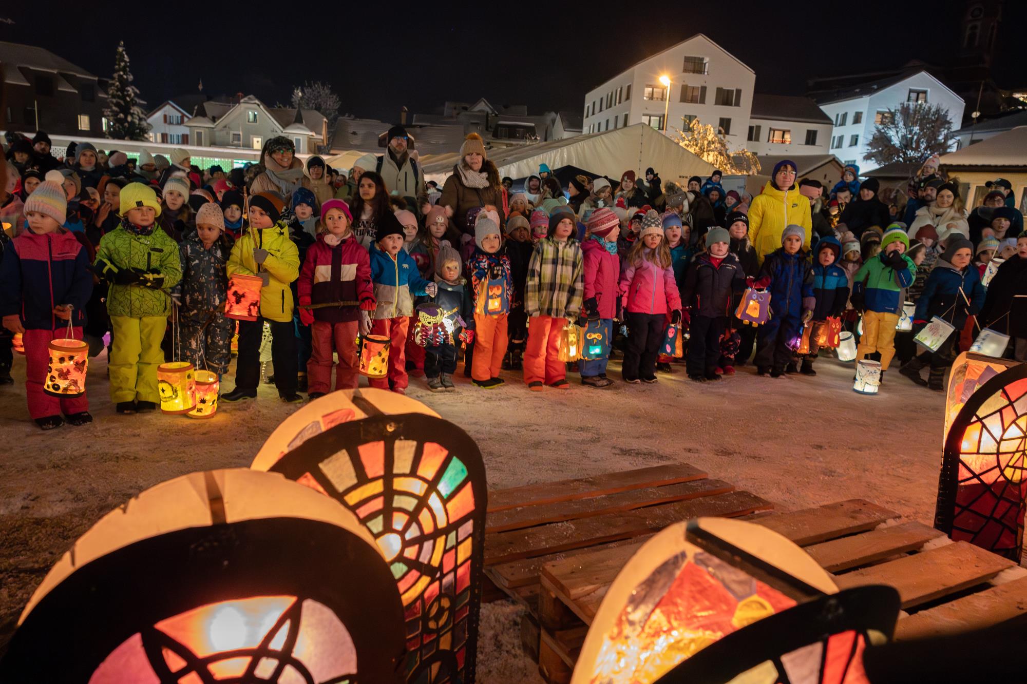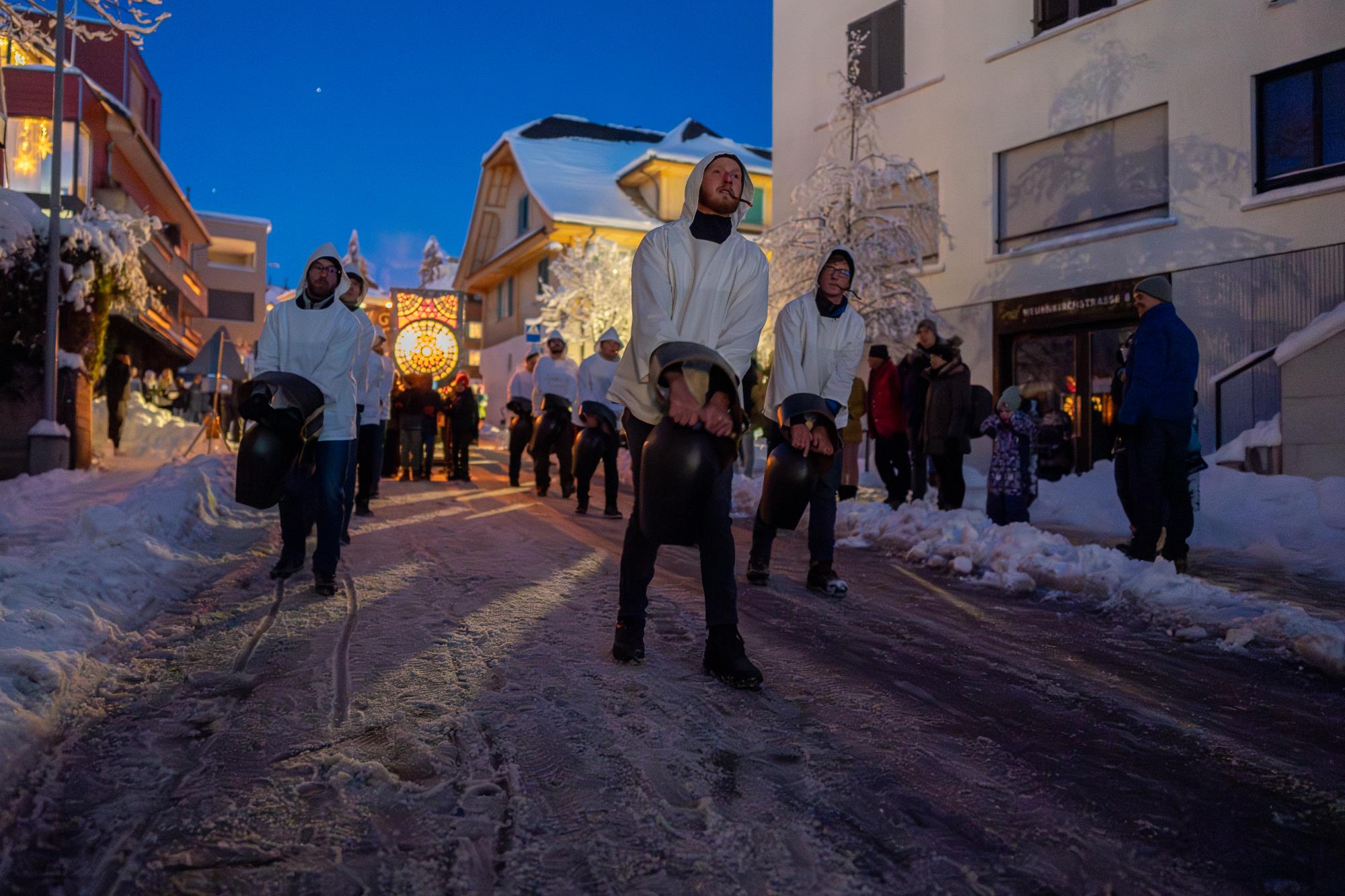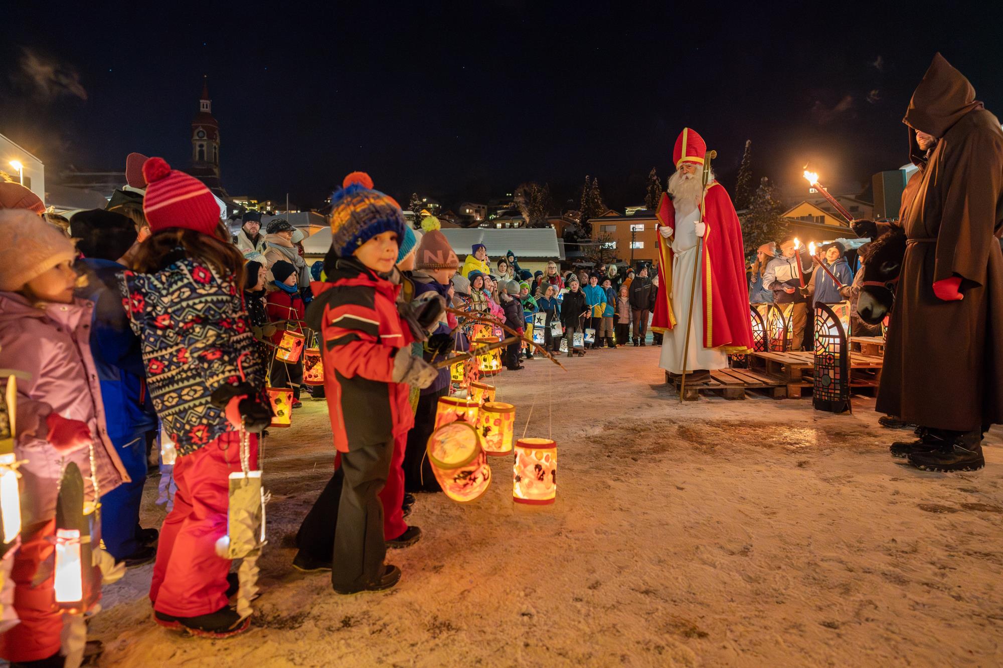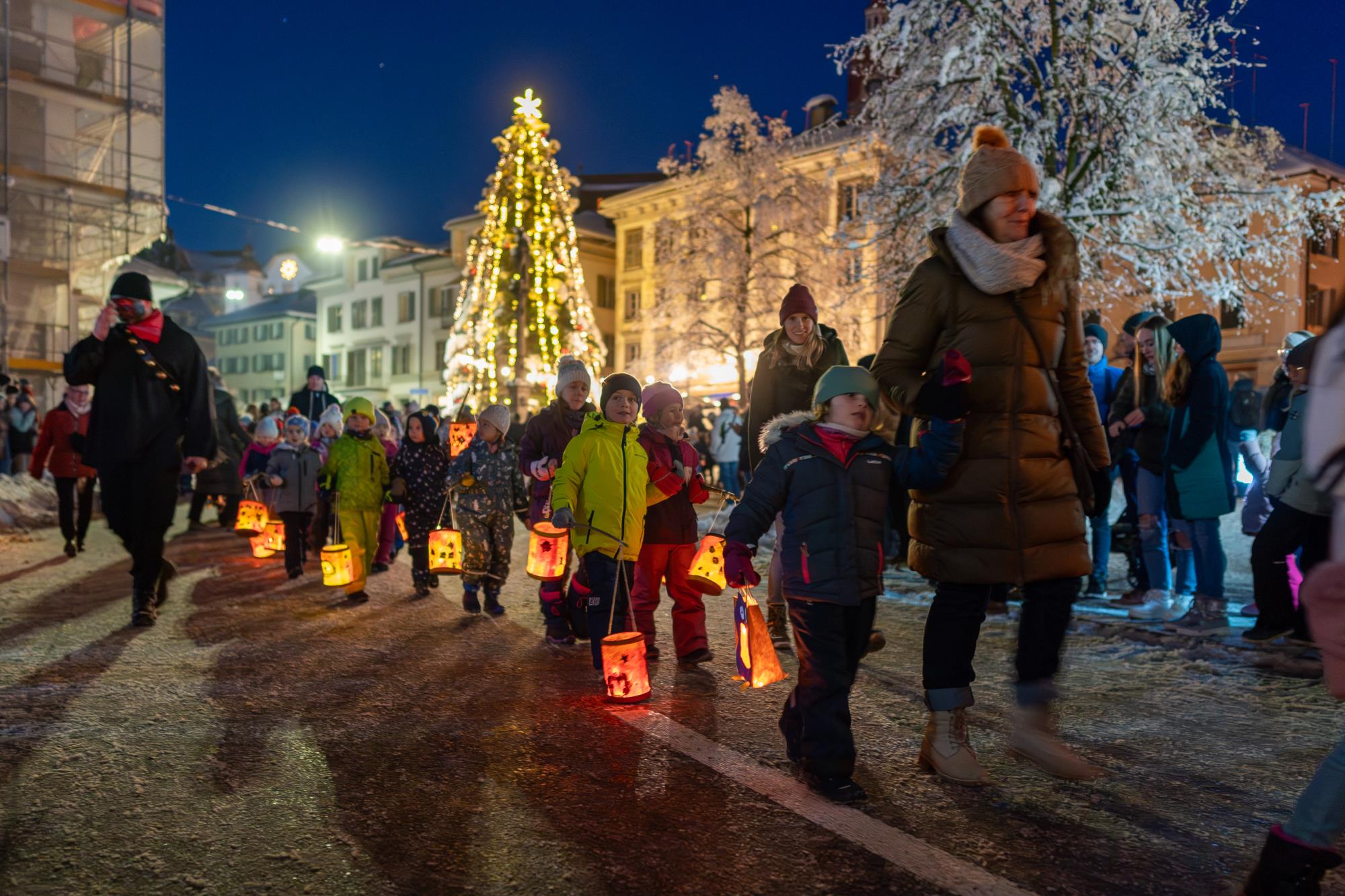 In Ruswil zieht der Samichlaus aus der Kirche auf den Märtplatz, gefolgt von Geislechlöpfer, Trychler, prächtigen Iffelen und bunten Kinderlaternen. Zusammen mit der verschneiten Landschaft bot sich den Zuschauenden ein Bild wie in einem Wintermärchen. Fotos Richi Brandenberger
