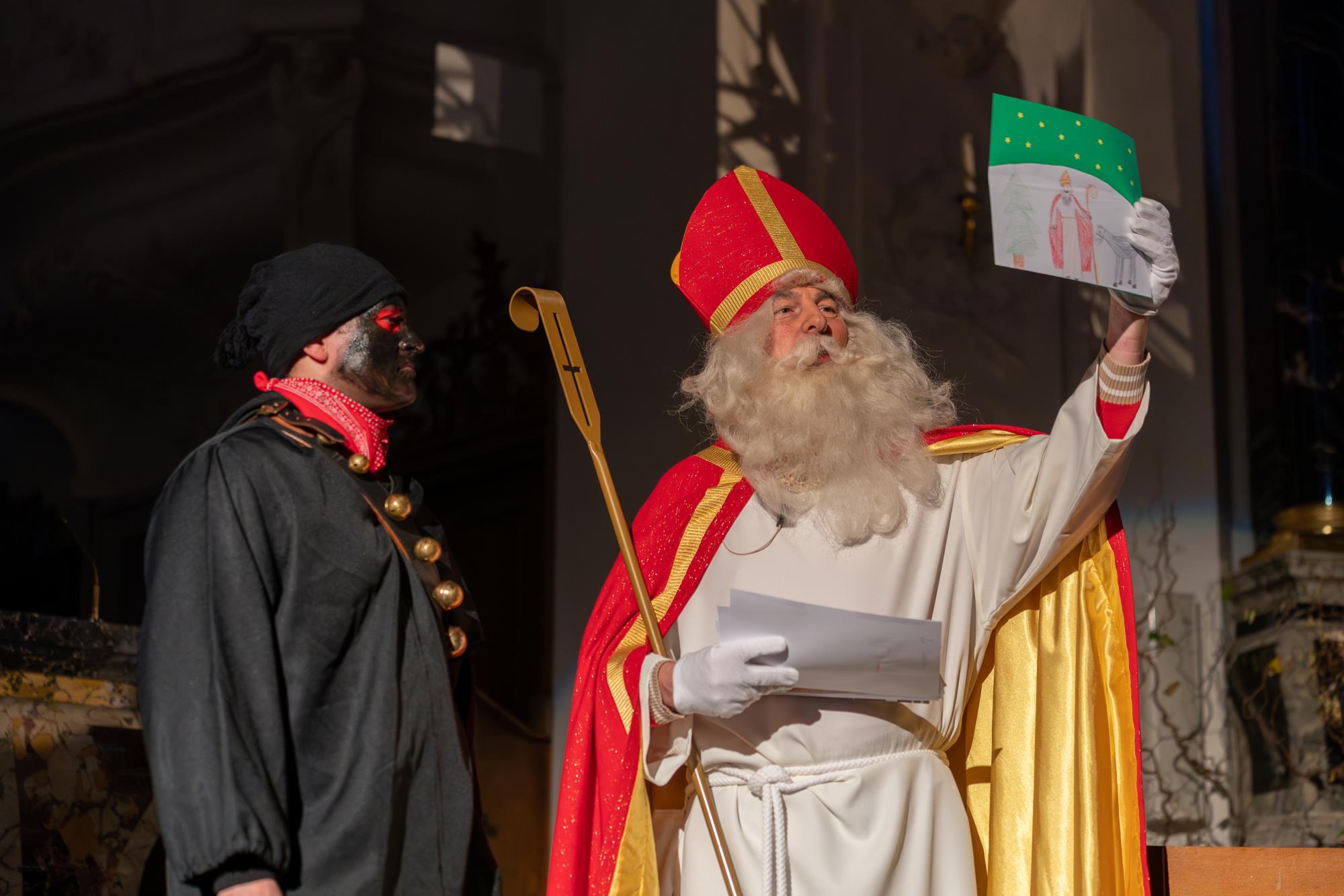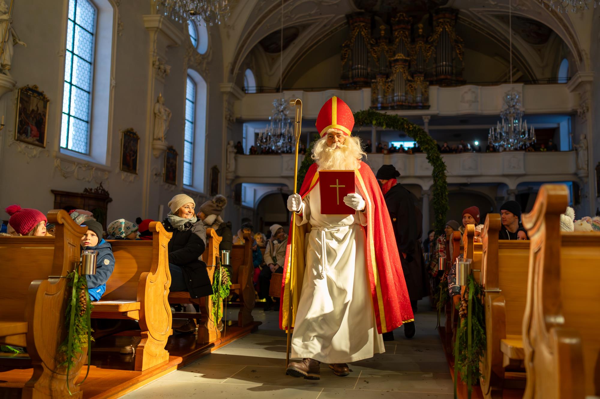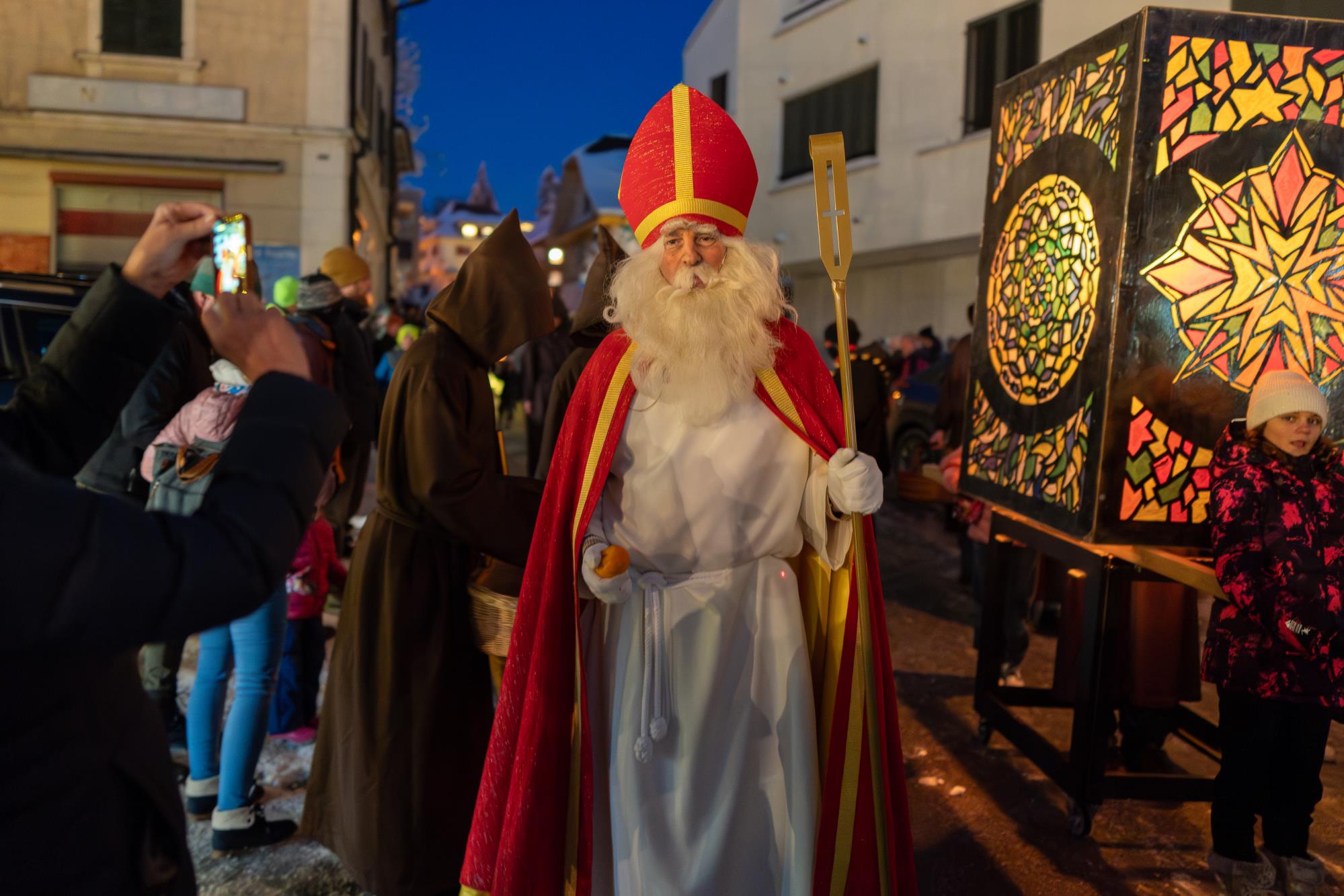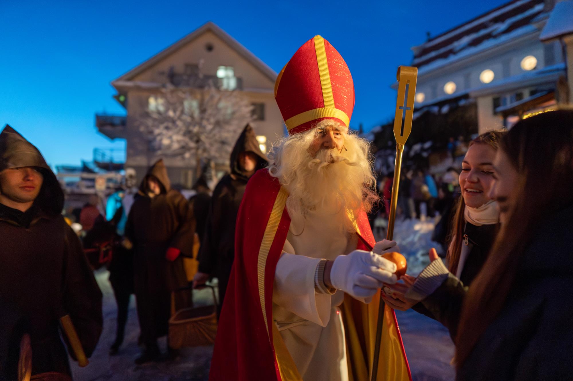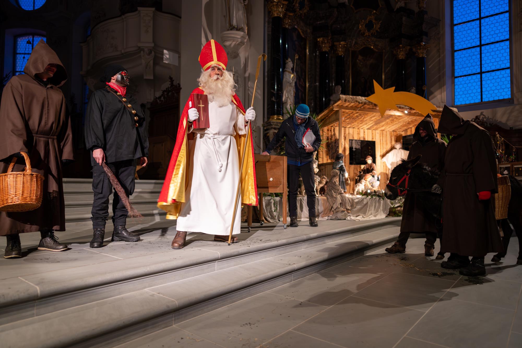 In Ruswil zieht der Samichlaus aus der Kirche auf den Märtplatz, gefolgt von Geislechlöpfer, Trychler, prächtigen Iffelen und bunten Kinderlaternen. Zusammen mit der verschneiten Landschaft bot sich den Zuschauenden ein Bild wie in einem Wintermärchen. Fotos Richi Brandenberger